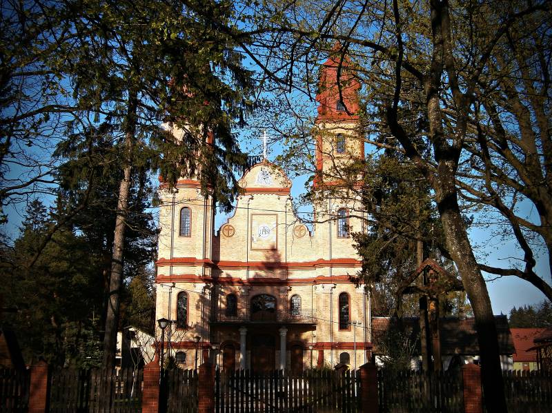 Kościół parafialny to nowoczesna świątynia. Od frontu po obu stronach głównego wejścia stoją dwie wysokie wieże z tarasem widokowym między nimi. Natomiast w jej wnętrzu podziwiać można unikatowe żyrandole, kinkiety i świeczniki z poroży jelenia wykonane przez Pawła Kordeckiego i Henryka Borowego. Główny ołtarz poświęcony jest tajemnicy fatimskiej. Boczne ołtarze, stacje Drogi Krzyżowej, konfesjonały wyrzeźbione w drewnie wykonał Stanisław Żywolewski. Na ścianach można podziwiać obrazy autorstwa Henryka Kuradczyka, Zbigniewa Budzyńskiego, a także ikony napisane przez Halinę Kabac.